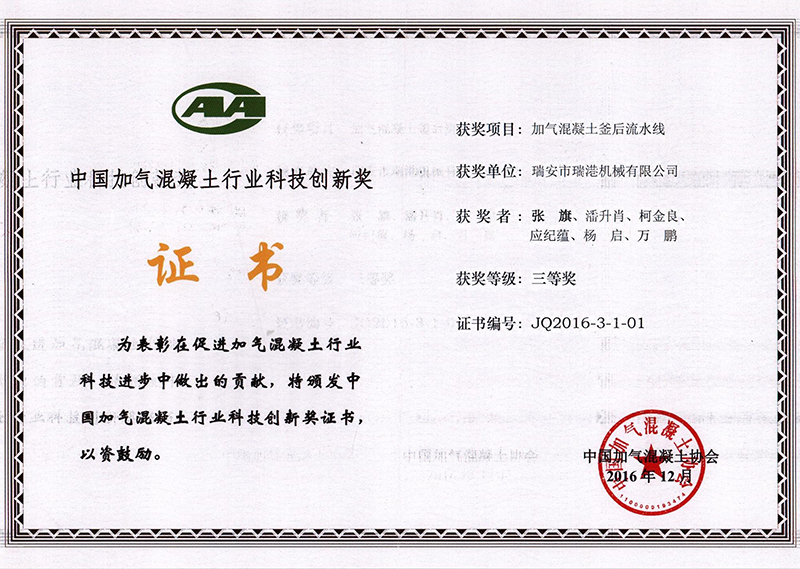 2016中國加氣混凝土行業(yè)科技創(chuàng)新獎
