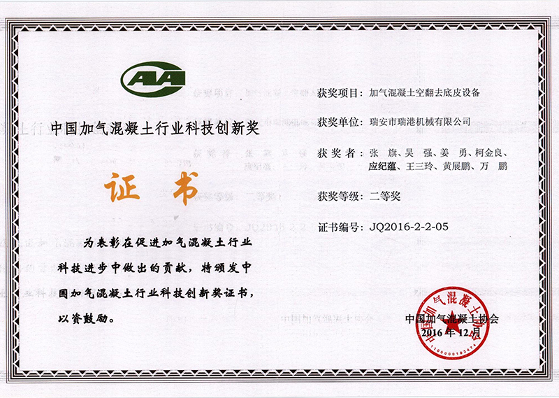 2016年中國加氣混凝土行業(yè)科技創(chuàng)新獎-空翻